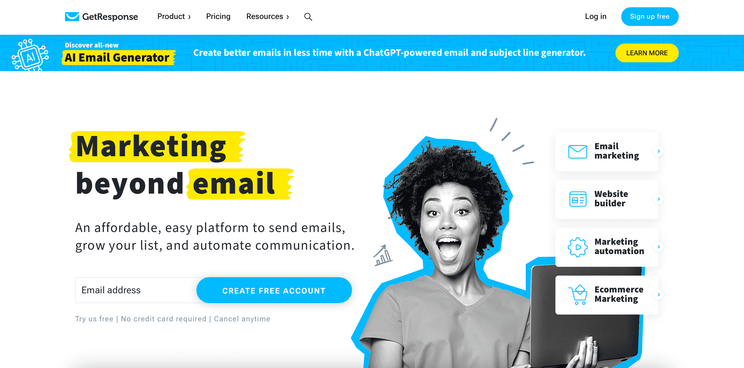 GetResponse is a comprehensive marketing platform that offers email marketing automation, landing pages, and segmentation tools, empowering you to effectively engage and nurture your audience.